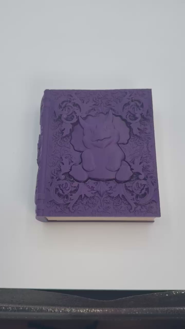 Book Themed Dice Tome Dice Box Purple Dino Silver DnD RPG Gift | Magic MTG
