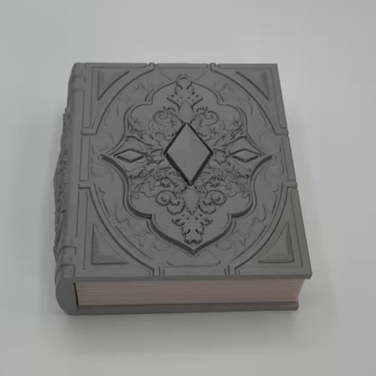 Unleash a touch of magic at your game table with this spellbinding book dice tome! Designed for tabletop gamers, dungeon masters, and dice connoisseurs, this enchanting case boasts a stunning diamond accent on the cover and is artfully molded to look like an ancient tome. The interior features compartments for dice storage and a generous rolling tray so you can keep everything neat, organized, and ready for action.