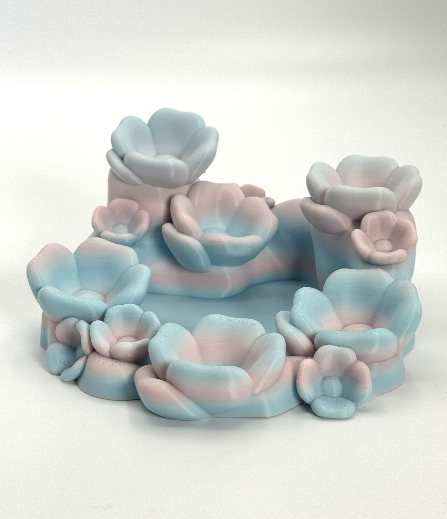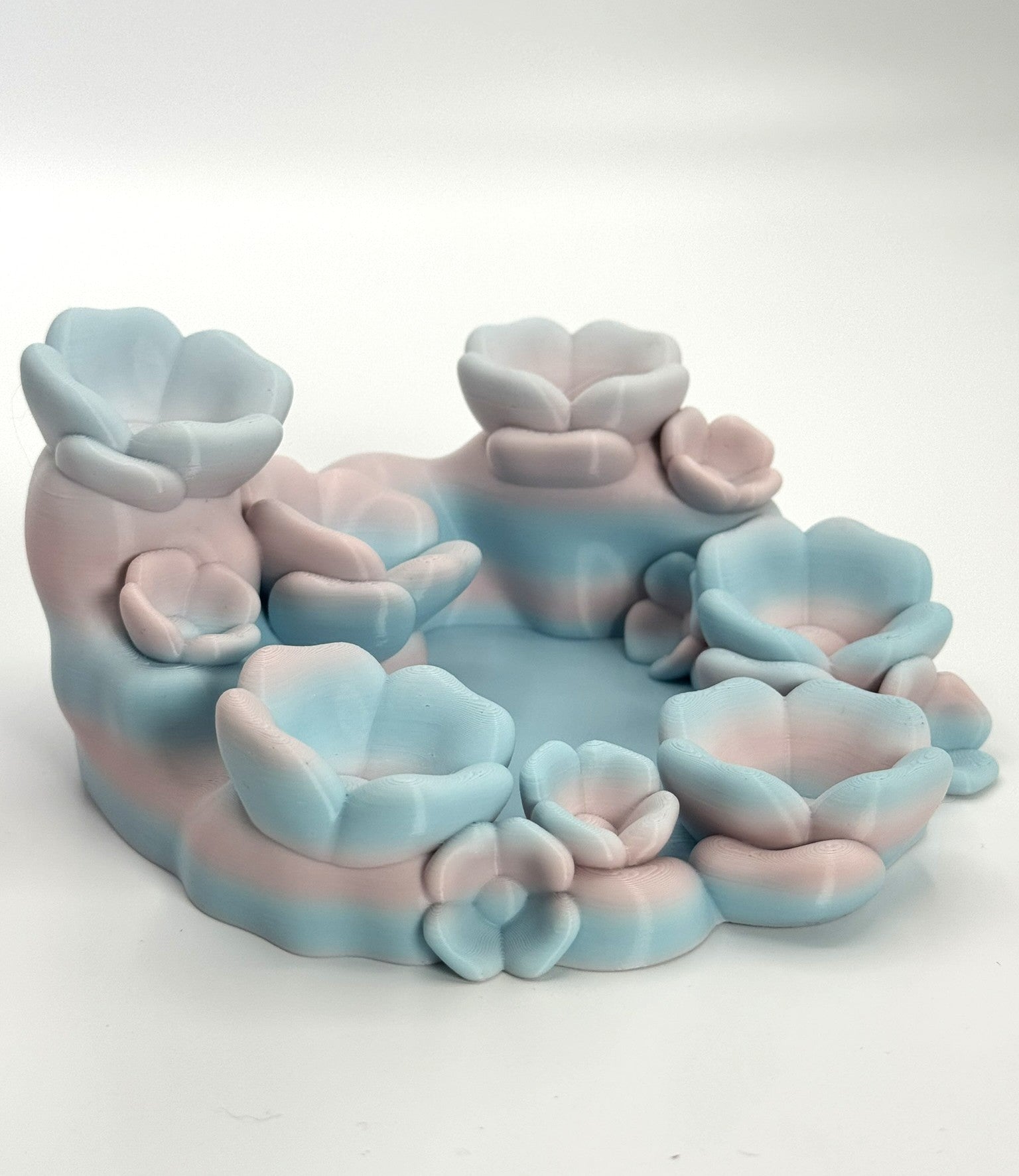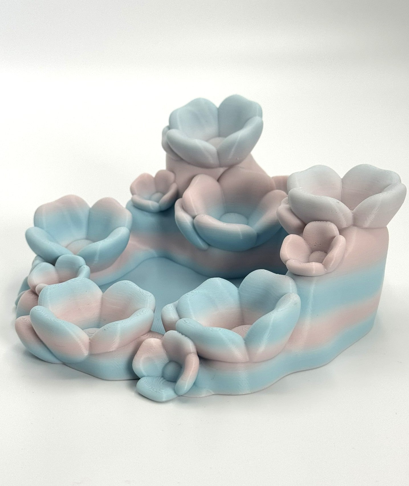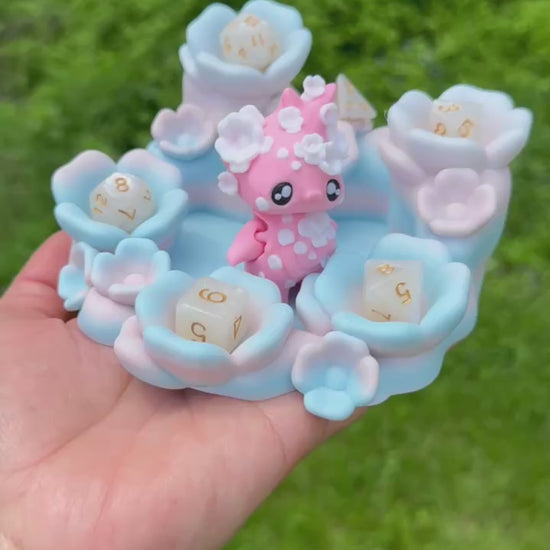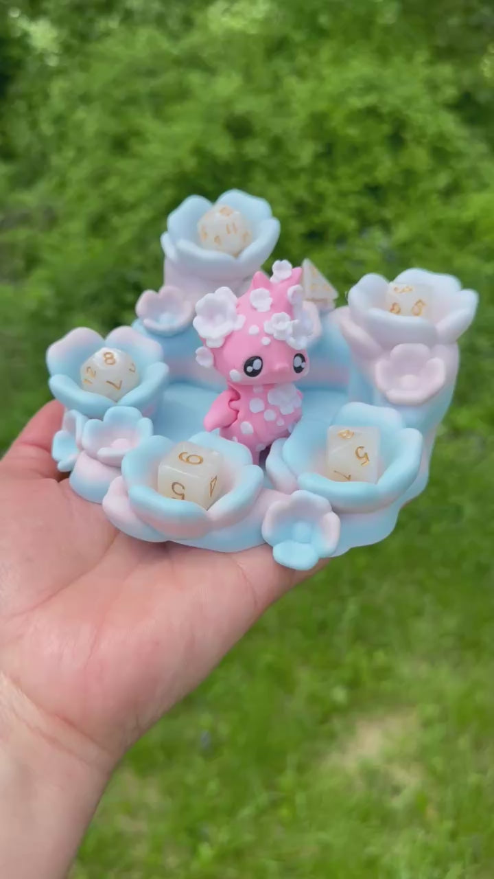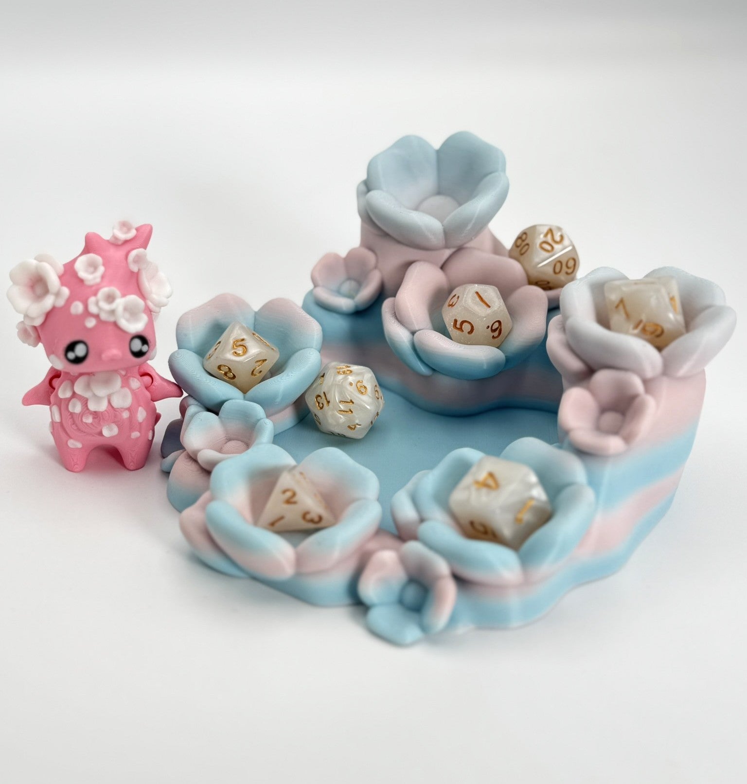 🌸 Level up your tabletop RPG sessions with this adorable 3D printed flower dice holder & rolling tray! Featuring beautifully detailed pastel rainbow petals and a precious kitty figure, this tray adds a whimsical touch to any game night. Each floral slot holds dice securely, making rolling fun and organized. The included kawaii kitty companion is perfect for cat lovers and collectors alike! Ideal for Dungeons & Dragons, Pathfinder, or any dice-based game, this decorative piece doubles as both a dice organizer and dice rolling station. The smooth, vibrant rainbow finish makes each tray unique—a must-have geek gift or kawaii display piece for RPG fans, gamers, and lovers of cute desk toys. 🎲🐾