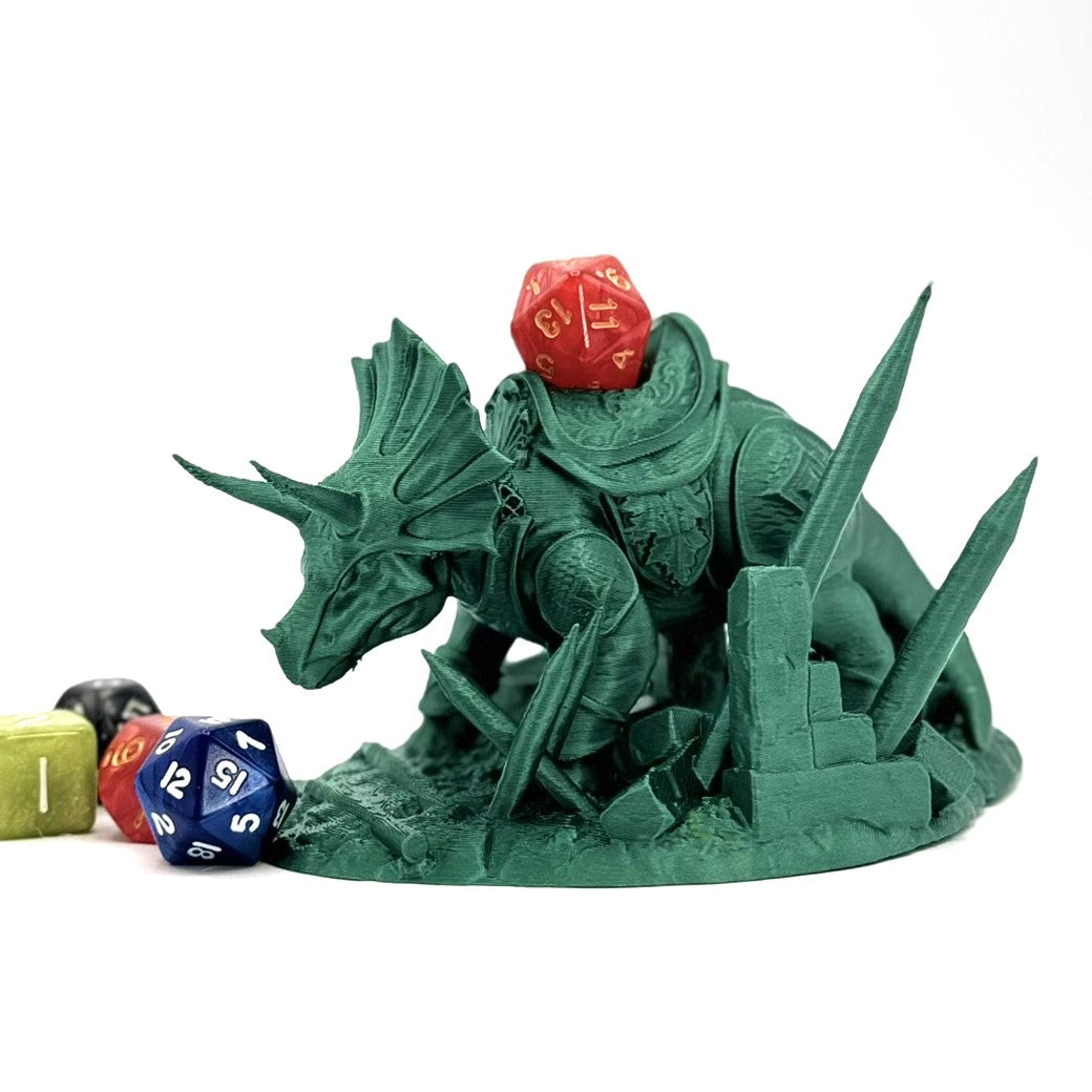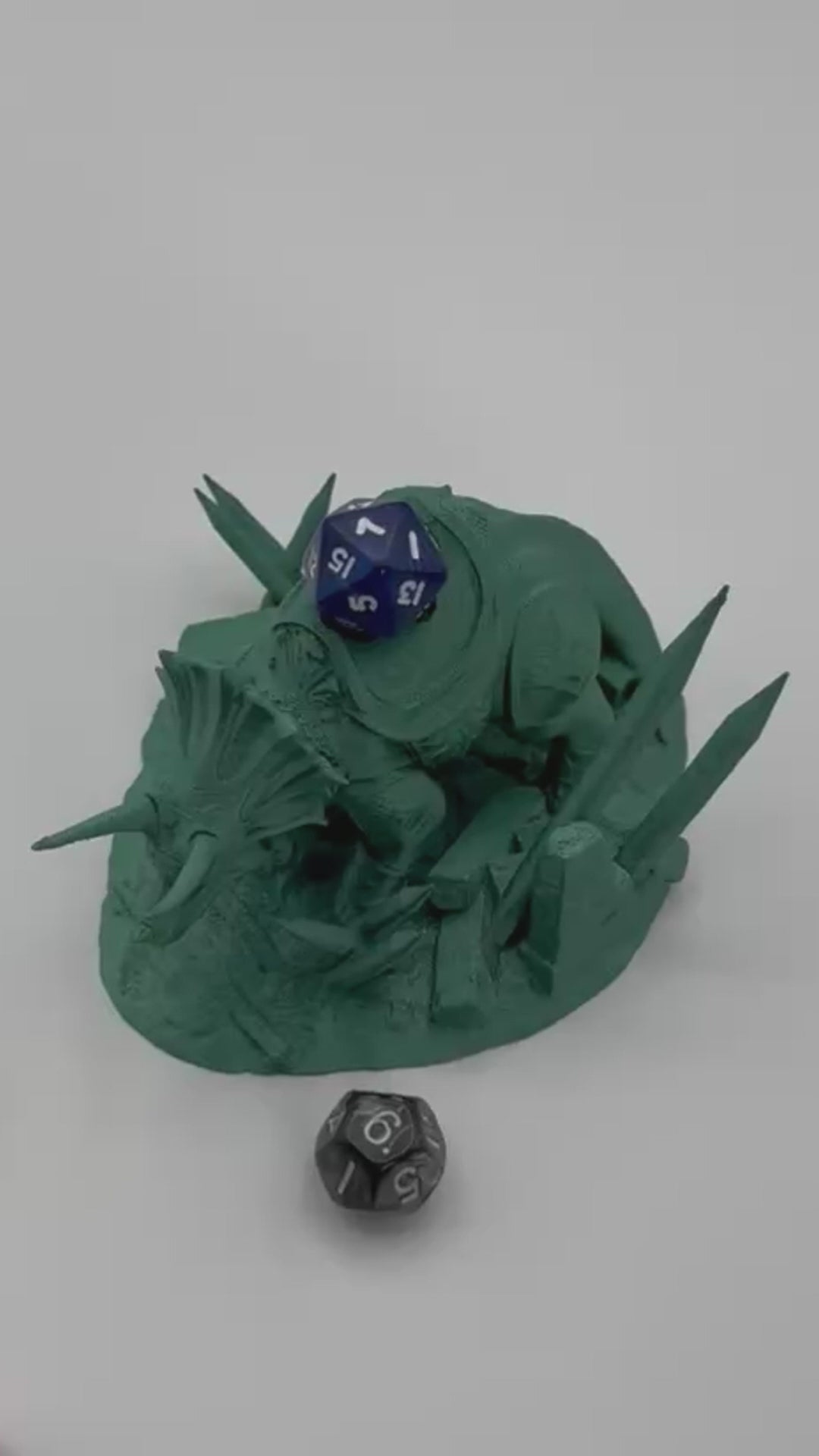 #DiceThrone #DinosaurDice #DNDAccessories #TabletopGaming #DiceProtector #GeekGift #D20Holder #RPGMiniature #BoardGameGift #TriceratopsStand #UniqueDice #FantasyGamer #GamingDecor