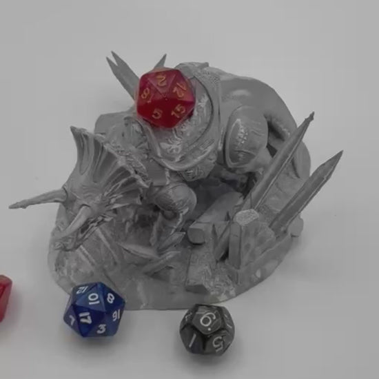 Elevate your tabletop experience with this fierce fighting dinosaur dice throne! Crafted as a detailed triceratops clad in battle armor, this throne not only securely displays your precious D20 dice but also becomes the star of your gaming sessions.